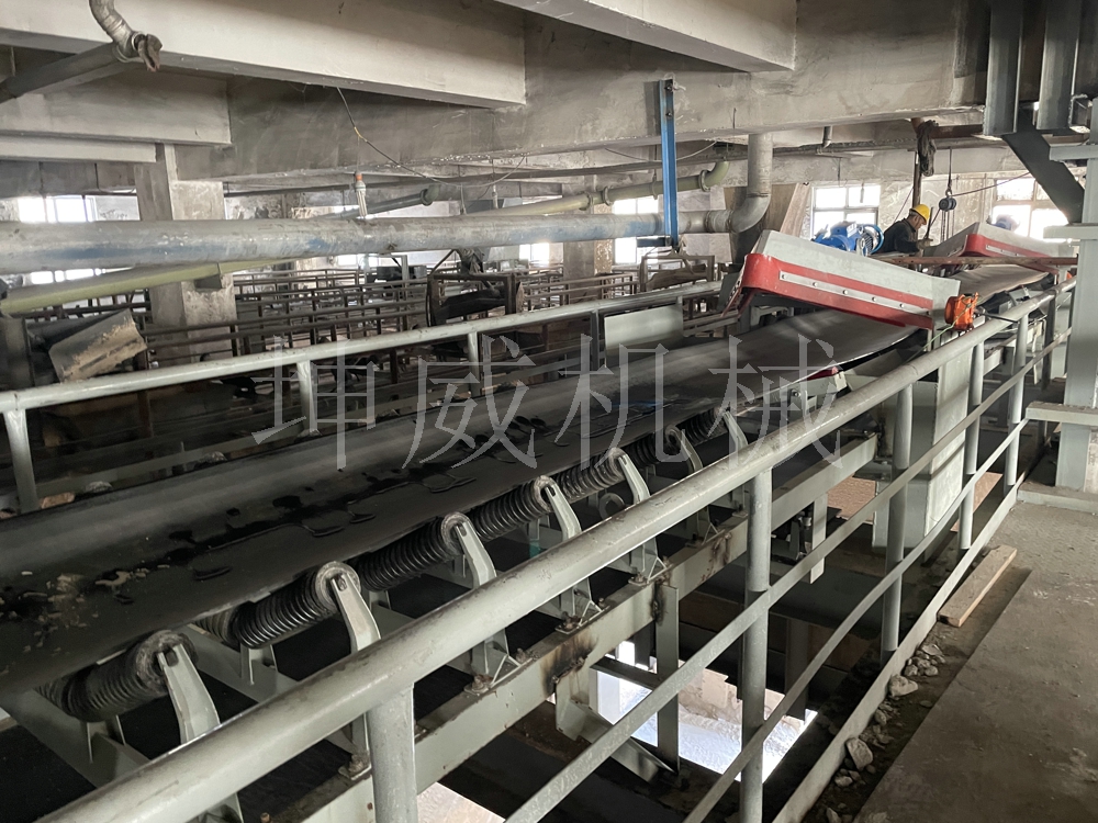 河南坤威機械在湖北黃石的施工現場,該皮帶輸送機為帶犁式卸料器的機型,目前已經安裝使用。